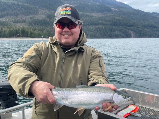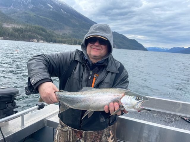 Our last trip managed to hook into over a dozen fish. A couple Bull Trout up to 6Lbs and then 10 Rainbows between 2 – 4 Lbs. That’s more like it. Maybe the beginning of our Spring fishery.