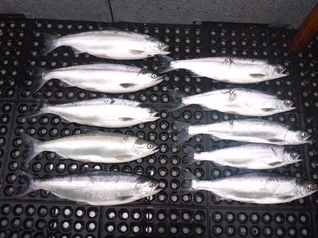Bull trout have been coming in on the usual Highliner flasher in the Lemon lime color with g-force spoons or green spatter back hoochies. The Bulls have been getting closer to the surface lately and we have been catching more and more above the 50ft mark.