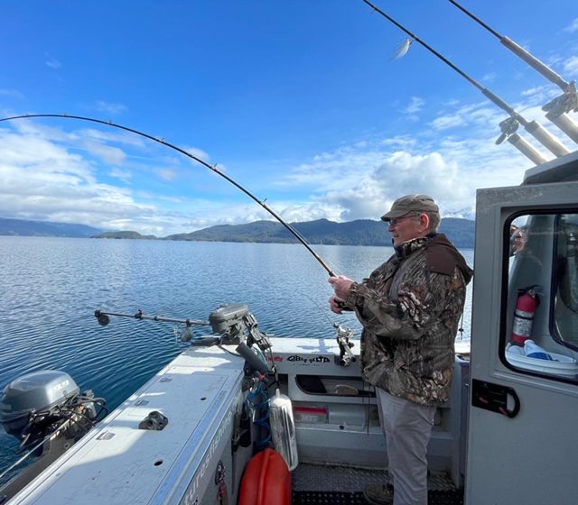 And on the down riggers we’ve been hooking a few Bull Trout down between 100-150 ft. The ‘STS’ flasher or the ‘Lemon Lime’ flasher have been our favourite. Followed by the green spatterback or green pistachio hoochie.
