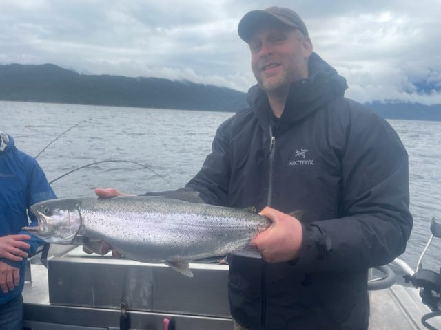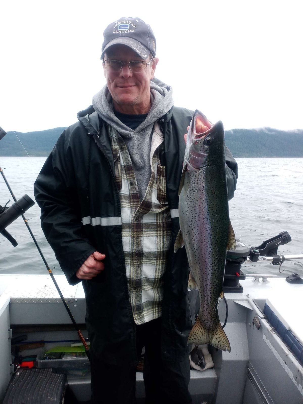 And, as usual the Brass/fire stripe croc has been producing well for us on the surface. Or, for Bull Trout we’ve been trolling the Gibbs STS flasher with a green spatterback hoochie down 55 – 101 ft.