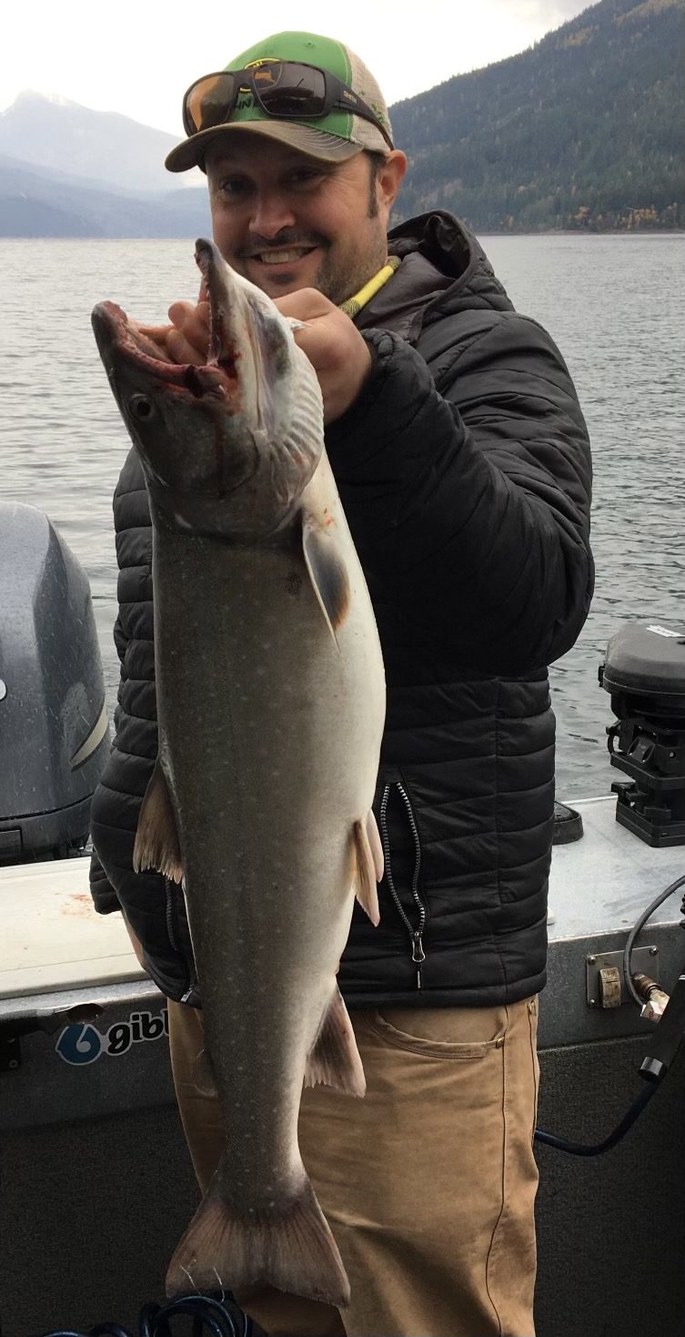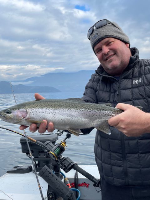 The latest catches have seen Rainbows between 2 – 3 Lbs and Bull Trout up to 10 Lbs. We have seen the odd Rainbow over 4 Lbs, but not as many as we had expected. Especially since we saw some fat Rainbows in August that were finding some Kokanee to eat. This pattern has changed, and the fish are back to eating mysis shrimp or any remaining insects in the lake.