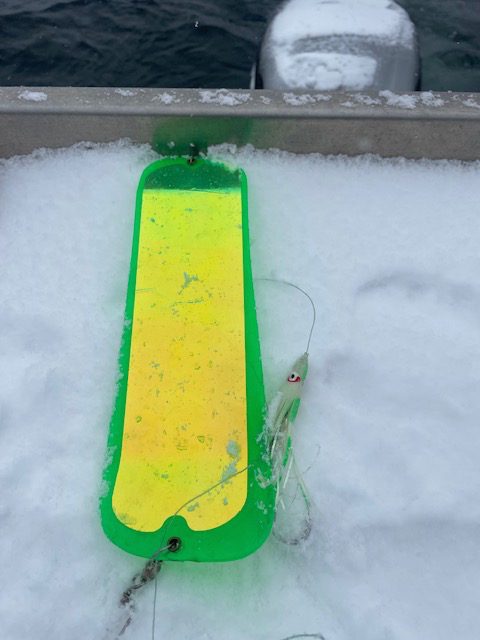 And for the Bull Trout, we’ve been catching most on the Gibbs STS flasher with a green spatterback hoochie. Also getting some on the green pistachio and the oil slick. The most consistent depths for us lately has been between 121′ – 153′.