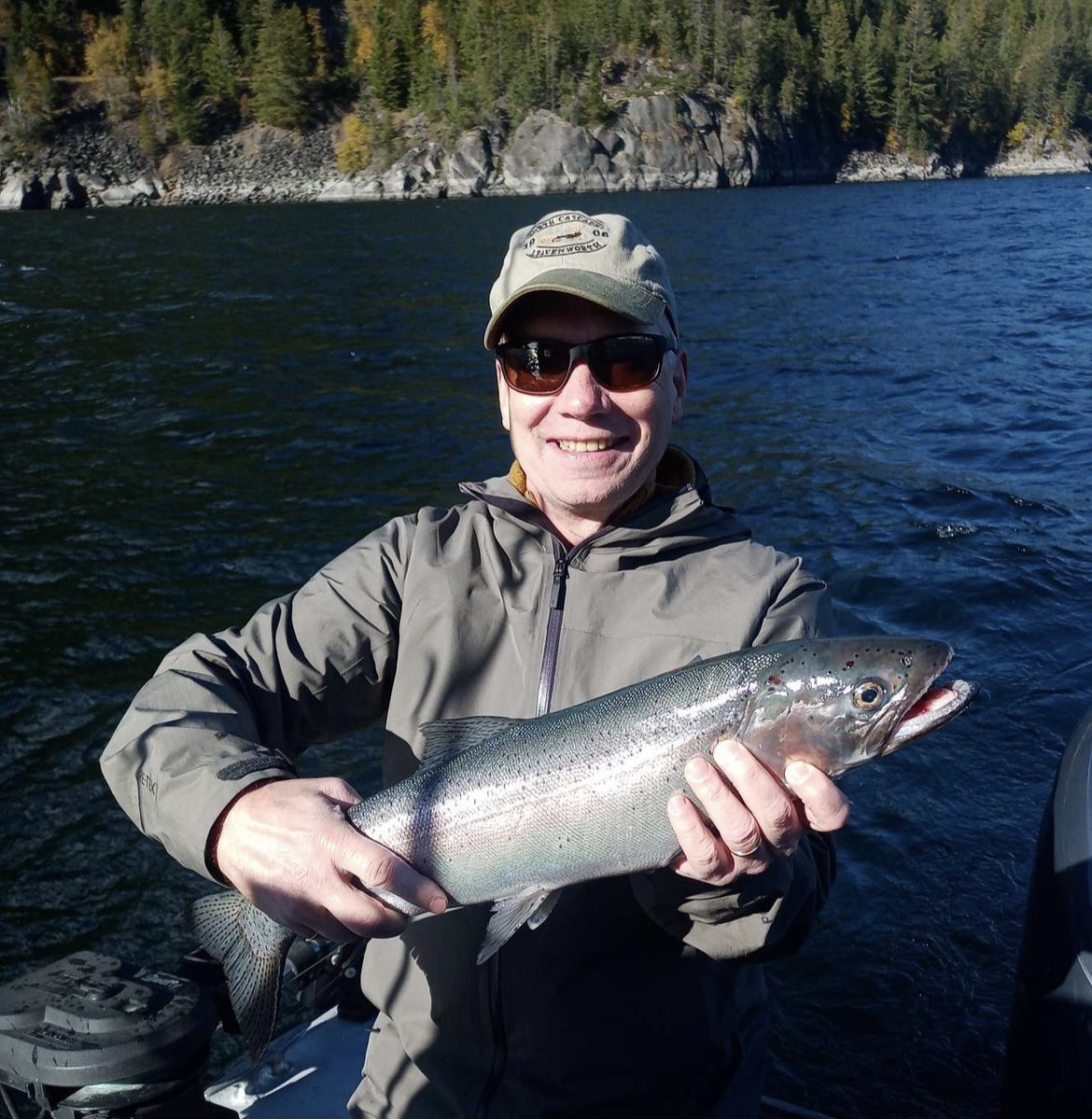 The Bull Trout have been coming in on our normal set-up on the downrigger. The Gibbs STS flasher, followed by the green pistachio or green oil slick hoochie have been most productive.