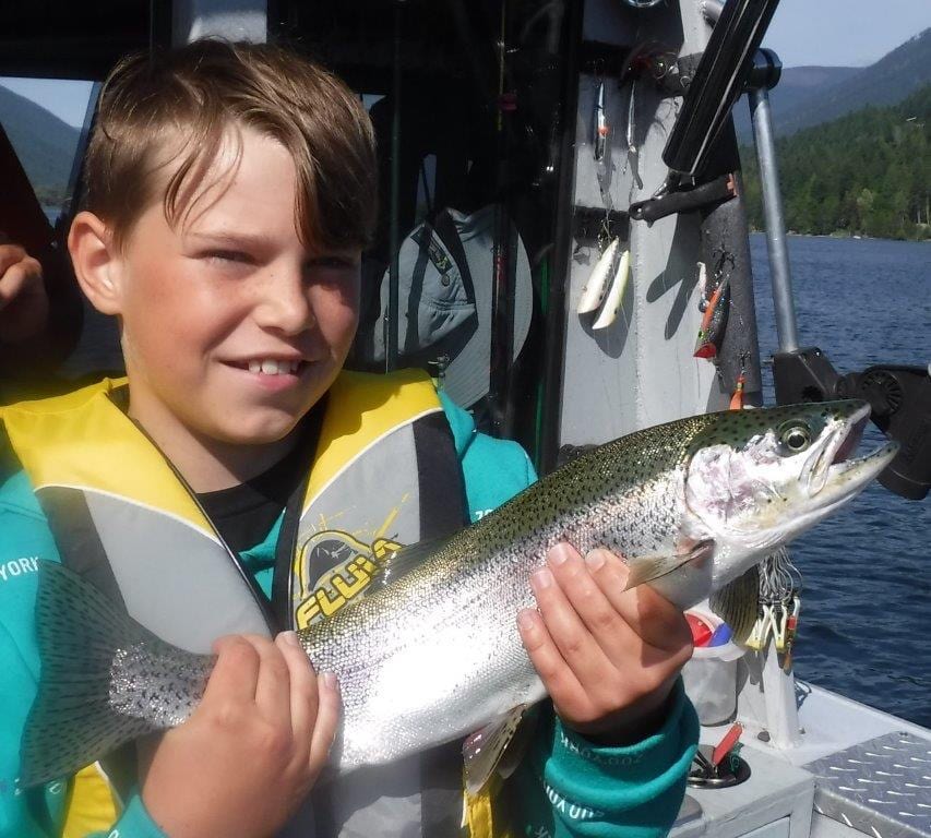 And back home on Kootenay so far, we have had most success for the Bull Trout on the Lemon Lime flasher followed by the green pistachio hoochie or the spatter back. Best depths as of early September have been 80ft – 121ft.