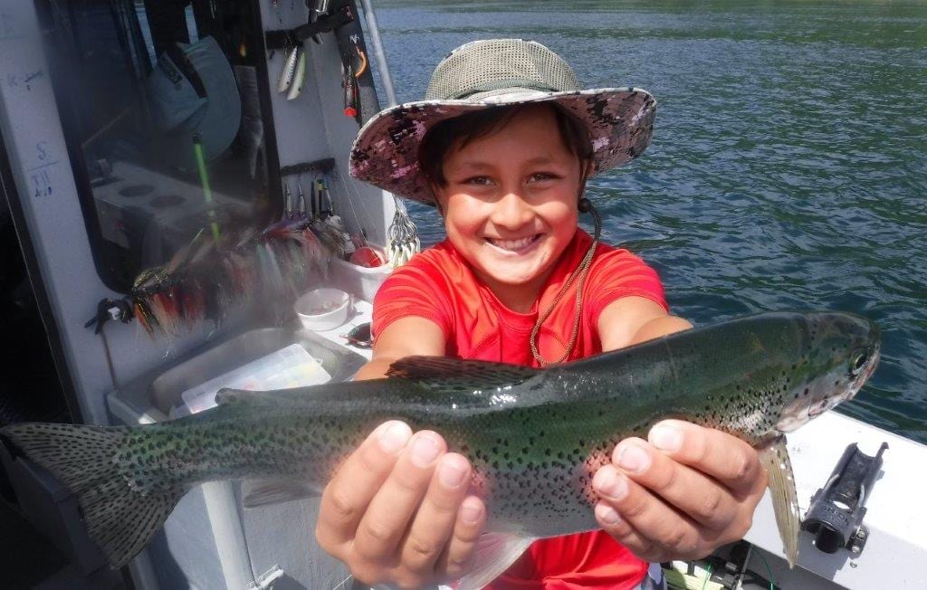 And for the Rainbows, we’ve been having best success on the Gibbs Delta Croc spoons, although our bucktail flies should take off pretty soon as the water temperature drops and more fish start heading towards the surface to feed.