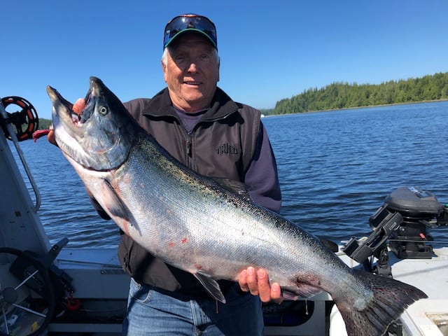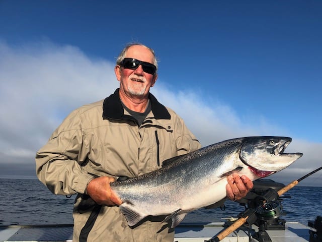 As the month progressed, we ran into big seas and strong winds for days, but we managed to find some good fish in sheltered waters. On most of our trips, we managed to get a good weather day mixed in with the others and managed to get offshore for Halibut. Mid month, the Chinook were showing up in good numbers along the shore line and we would fish the first half of our day along the beach, and then head offshore for halibut and possibly some coho.