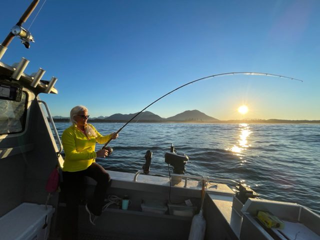 On the west coast, it was a combination of spoons or hoochies. Some of the bait was so small that we had our best luck on Gibbs Skinny G’s and Wee G’s, as well as the Kingfisher spoons in 3″. Favourite colors were: herring aid, white lightning, cookies & cream, no bananas, maverick.